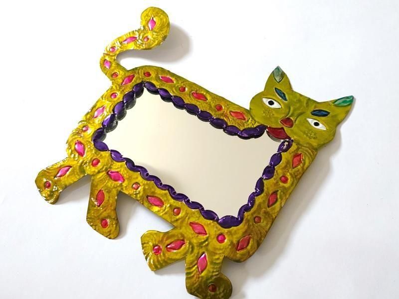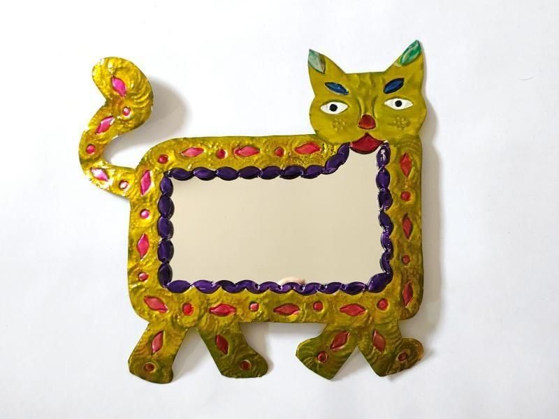 メキシコ ブリキ鏡【ネコL イエロー】