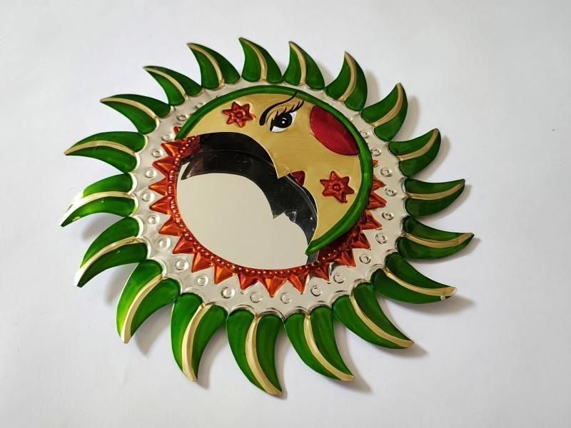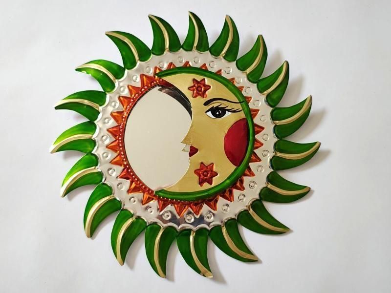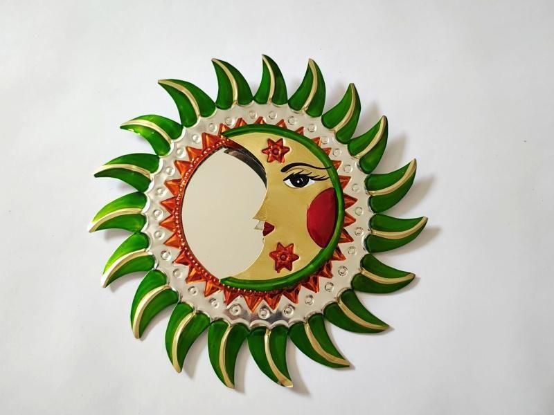 メキシコ ブリキ鏡【太陽と月L グリーン】
