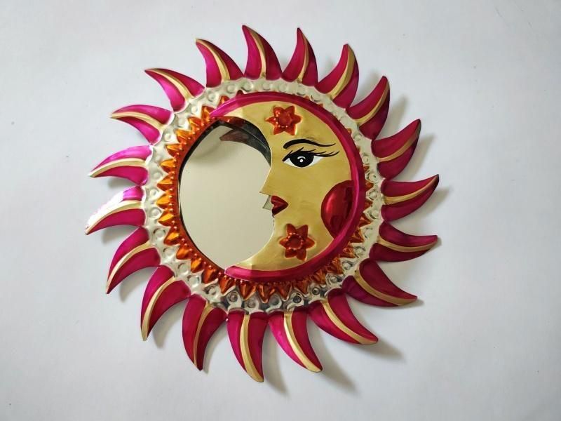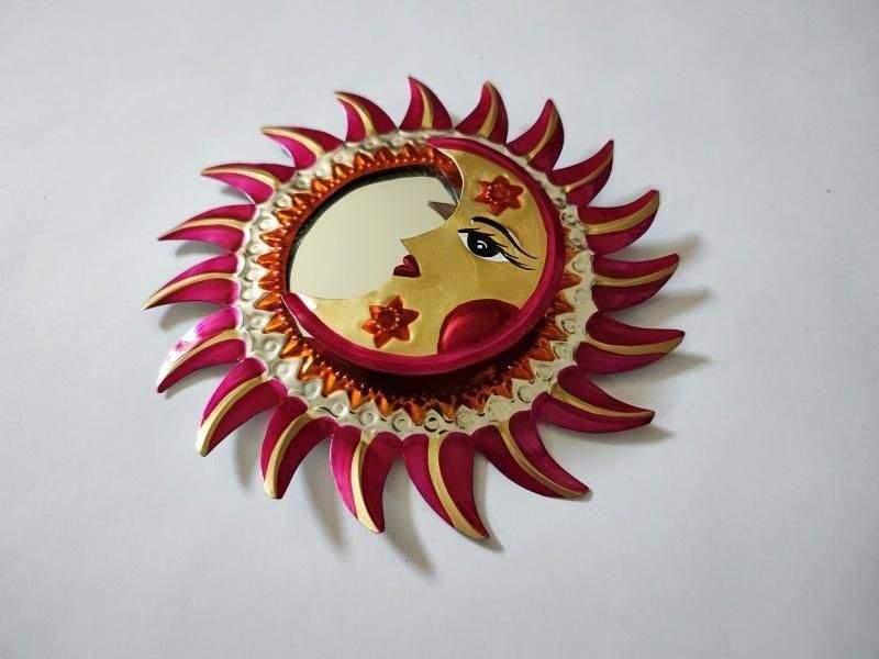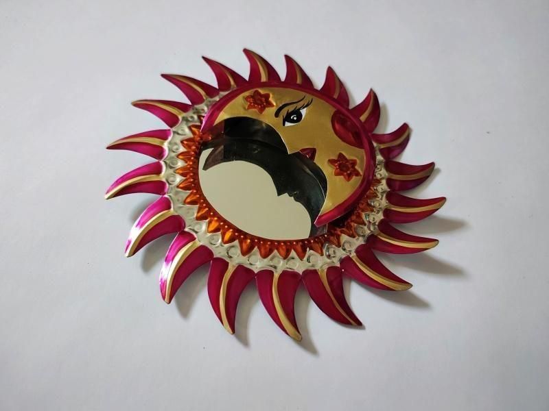 メキシコ ブリキ鏡【太陽と月M ピンク】