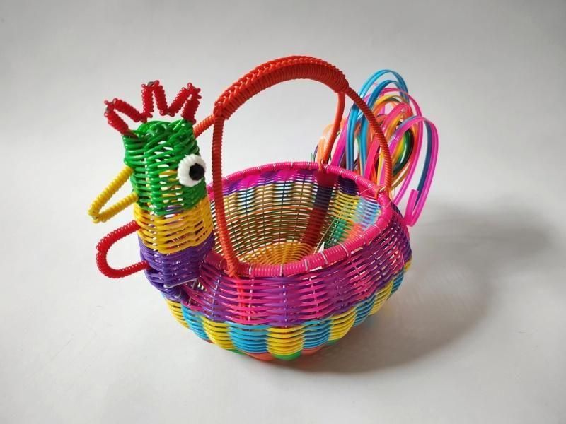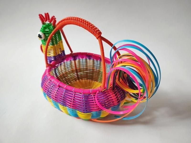 メキシコ ワイヤーカゴ【ニワトリM グリーン×ピンク】